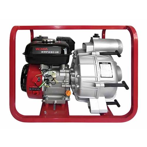 Водяная помпа Weima оборудована 4-х тактным бензиновым двигателем WM168FB мощностью 6,5 лошадиных сил. Запуск производится с помощью ручного стартера. Производительность модели до 300 литров в минуту. Создает высокое давление на выходе, высота подъема до 26 метров.